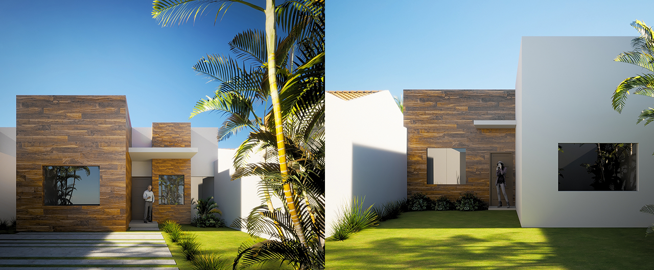 Todas las casas tienen un color y textura en la fachada que les genera diferencia e identidad a cada unidades del proyecto.
